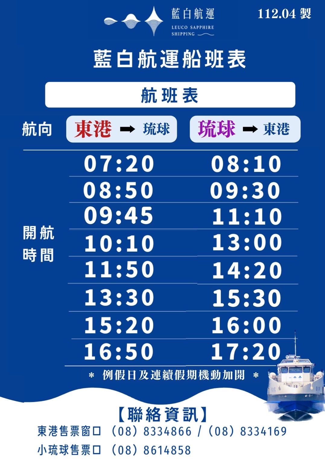 ▶︎藍白航運:東琉線碼頭站至小琉球